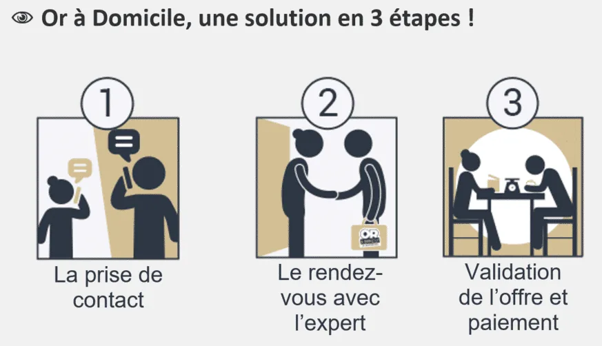 solution Or à Domicile vous permet de faire venir un expert chez vous, pour une estimation gratuite de vos bijoux en or, lingots ou pièce d’or. Ce service se base sur